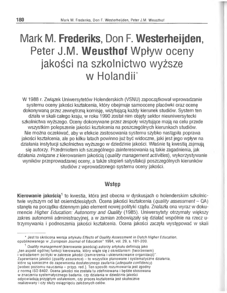 * Jest to skrócona w ersja artykułu Effects o f O uality A ssessm en t in D utch H ig h e r Education,