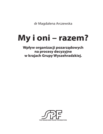 dr Magdalena Arczewska My i oni – razem? Wpływ organizacji pozarządowych na procesy decyzyjne w krajach Grupy Wyszehradzkiej. 1 Copyright © 2008 The Sasakawa Peace Foundation The Sasakawa Central Europe Fund Wszystkie prawa zastrzeżone. Niniejsza publikacja została sfinansowane ze środków: The Sasakawa Peace Foundation/ The Sasakawa Central Europe Fund The Nippon Foundation Building 1-2-2 Akasaka, Minato-ku, Tokio 107-8523 Japonia Badania w Polsce zostały zrealizowane przez Instytut Spraw Publicznych Spis treści Wprowadzenie 5 Analiza wyników badań 6 1. Ogólny kontekst 2. Role organizacji pozarządowych 3. Wywieranie wpływu na procesy decyzyjne 4. Perspektywy międzysektorowych relacji 7 9 12 15 Wnioski i rekomendacje Podsumowanie 17 23 Aneks 1. Metodologia 2. Realizacja badań 3. Zespół badawczy 25 25 25 26 My i oni – razem? Wprowadzenie Celem projektu zrealizowanego przez Instytut Spraw Publicznych dla Fundacji Sasakawa było zbadanie kierunków rozwoju trzeciego sektora i wpływu organizacji pozarządowych na procesy decyzyjne w Polsce. Badanie to miało charakter porównawczy i było prowadzone równolegle na Węgrzech, w Czechach oraz na Słowacji. Podstawą przeprowadzenia badań był opracowany przez międzynarodową grupę badaczy jednolity kwestionariusz problemowy. W każdym z krajów przeprowadzono około 30 wywiadów z kluczowymi przedstawicielami środowiska pozarządowego. Na podstawie zebranego materiału empirycznego, sporządzono raporty zawierające wnioski, propozycje zmian i strategię postępowania dla organizacji pozarządowych, tak, by przez swoje działania mogły efektywnie przyczyniać się do rozwoju społeczno-ekonomicznego. Rekomendacje zawarte w raporcie sformułowano na podstawie analizy treści wywiadów, a także w oparciu o wnioski płynące z dyskusji eksperckiej, w trakcie której omówiono wstępne wyniki zrealizowanych badań. Lista respondentów jest jawna, natomiast ich poszczególne wypowiedzi, cytowane w raporcie z badań pozostają anonimowe. 1. senator Mieczysław Augustyn, Wielkopolski Bank Żywności 2. Jerzy Boczoń, Fundacja Regionalne Centrum Informacji i Wspomagania Organizacji Pozarządowych 3. Urszula Burkot Polski Klub Ekologiczny 4. Marcin Dadel, Centrum Inicjatyw Obywatelskich 5. Robert Drogoś, Stowarzyszenie TRATWA 6. ksiądz Jacek Dziel, Caritas Archidiecezji Gnieźnieńskiej 7. Piotr Frączak, Fundacja Rozwoju Społeczeństwa Obywatelskiego 8. Grzegorz Gruca, Polska Akcja Humanitarna 9. Jan Herbst, Stowarzyszenie KLON/Jawor 10. Teresa Hernik, Związek Harcerstwa Polskiego 11. Maria Holzer, Polska Fundacja Dzieci i Młodzieży 12. dr Andrzej Juros, Katolicki Uniwersytet Lubelski 13. dr Andrzej Kassenberg, Instytut na rzecz Ekorozwoju 14. Ewa Kulik-Bielińska, Fundacja im. Stefana Batorego 15. Jacek Kwiatkowski, Fundacja Rozwoju Demokracji Lokalnej 16. Marzena Mendza-Drozd, Stowarzyszenie Dialog Społeczny 17. Witold Monkiewicz, Fundacja Rozwoju Demokracji Lokalnej 5 My i oni – razem? 18. 19. 20. 21. 22. 23. 24. 25. 26. 27. 28. 29. 30. Alicja Pacewicz, Fundacja Centrum Edukacji Obywatelskiej Piotr Pawłowski, Stowarzyszenie Przyjaciół Integracji Marek Piasecki, Fundacja Fuga Mundi Piotr Rymarowicz, Fundacja Wspierania Inicjatyw Ekologicznych Tomasz Schimanek, Akademia Rozwoju Filantropii w Polsce Rafał Serafin, Fundacja Partnerstwo dla Środowiska ksiądz Stanisław Słowik, Caritas Diecezji Kieleckiej Krzysztof Smolnicki, Dolnośląska Fundacja Ekorozwoju Piotr Szczepański, Fundacja Wspomagania Wsi Anna Szelest, Stowarzyszenie Wspierania Organizacji Pozarządowych MOST Zbigniew Wejcman, Biuro Obsługi Ruchu Inicjatyw Społecznych BORIS Jan Jakub Wygnański, Stowarzyszenie na rzecz Forum Inicjatyw Pozarządowych Jan Żukowski, Kujawsko-Pomorskie Stowarzyszenie Związków Sportowych Analiza wyników badań Celem projektu było zbadanie kierunków rozwoju trzeciego sektora i wpływu organizacji pozarządowych na procesy decyzyjne w Polsce. Informacje zbierane w toku wywiadów dotyczyły kilku obszarów: • ogólnego kontekstu, w tym definiowania pojęcia „organizacja pozarządowa” oraz czynników i wydarzeń które wywarły istotny wpływ na funkcjonowanie organizacji pozarządowych w Polsce po 1989 roku (kroki milowe), • ról organizacji pozarządowych, w tym ról jakie organizacje pozarządowe odgrywają w stosunku do państwa, administracji rządowej i samorządowej (stan faktyczny) oraz zmian jakim ulegały one na przestrzeni ostatnich osiemnastu lat; ról jakie powinny one odgrywać (stan idealny) oraz ról jakie mogłyby by odgrywać przy uwzględnieniu aktualnych uwarunkowań społeczno-prawnych (przy odniesieniu do rzeczywistości), • wywierania wpływu na procesy decyzyjne, w tym stosowanych przez organizacje pozarządowe mechanizmów i metod oddziaływania, konkretnych przykładów sukcesów i porażek dotyczących wywierania wpływu oraz udziału organizacji w procesie konsultacji społecznych, • perspektyw relacji międzysektorowych, w tym rekomendowanych przez respondentów zmian o charakterze społecznym i prawnym, które korzystnie wpłynęłyby na wzajemne relacje organizacji pozarządowych i administracji publicznej oraz czynników, które stanowią przeszkodę w ogrywaniu pełnionych ról i utrudniają relacje międzysektorowe, a leżących po stronie administracji publicznej, jak i organizacji. 6 My i oni – razem? 1. Ogólny kontekst Respondenci proszeni o wyjaśnienie jak rozumieją termin organizacja pozarządowa, odwoływali się do horyzontalnego podziału: organizacje zarejestrowane takie jak stowarzyszenia i fundacje versus nieformalne działania obywatelskie, społeczne. Przy czym trzeba podkreślić, że jedynie sześciu respondentów definiując to pojęcie zaznaczyło, że organizacja pozarządowa posiada osobowość prawną i jest strukturą posiadającą pewien formalny status. Rozmówcy najczęściej jednak odwoływali się do spontanicznych działań oddolnych pod