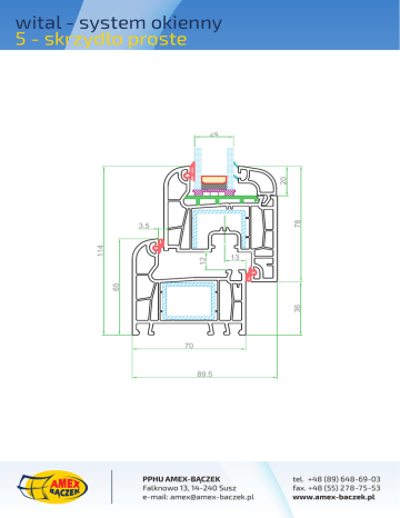 wital - system okienny 5 - skrzydło proste PPHU AMEX-BĄCZEK Falknowo 13, 14-240 Susz e-mail: [email protected] tel. +48 (89) 648-69-03 fax. +48 (55) 278-75-53 www.amex-baczek.pl