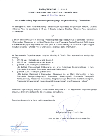 W Regulaminie organizacyjnym lnstytutu GruŹlicy i Chorób Płuc wprowadzam następując