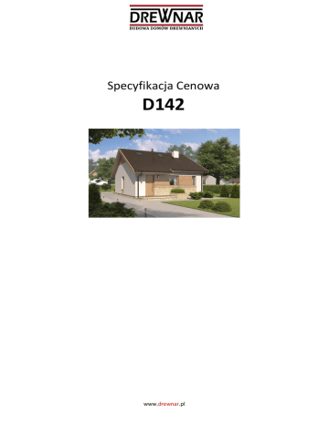 Specyfikacja Cenowa D142 www.drewnar.pl STAN DEWELOPERSKI ROZSZERZONY Poniższe prace i rozwiązania opisują strukturę budowy domu letniskowego w zakresie standardu wykończenia: „STAN DEWELOPERSKI ROZSZERZONY“. Niniejsze rozwiązania należy traktować, jako przykładowe, które po dostarczeniu projektu architektoniczno-konstrukcyjnego zostaną zaktualizowane. 1. Ściany zewnętrzne 5. Konstrukcja stropowa Budowa ścian z deską elewacyjną w przekroju od środka na zewnątrz: Budowa konstrukcji stropowej nad parterem w przekroju od góry w dół (wykończenie płyta GK), budynek z poddaszem użytkowym: 10,0 mm 20,0 mm płyta gipsowo-kartonowa na stelażu + szpachlowanie połączeń/ boazeria drewniana folia polietylenowa masywna, nośna konstrukcja drewniana pianka poliuretanowa/wełna mineralna tworząca rdzeń izolacji cieplnej i akustycznej płyta wiórowa OSB/MFP membrana wysokoparoprzepuszczalna pustka powietrzna/wentylacyjna 20,0 mm deska elewacyjna w kolorze wg. wzornika 12,5/15,0 mm 140,0 mm 140,0 mm Budowa ścian z izolacją zewnętrzną w przekroju od środka na zewnątrz: 12,5/15,0 mm 140,0 mm 140,0 mm 12,0 mm 50,0 mm - płyta gipsowo-kartonowa na stelażu + szpachlowanie połączeń/ boazeria drewniana folia polietylenowa masywna, nośna konstrukcja drewniana pianka poliuretanowa/wełna mineralna tworząca rdzeń izolacji cieplnej i akustycznej płyta wiórowa OSB/MFP płyty izolacji cieplnej wykonane ze stabilizowanego styropianu, stosowane jako dodatkowe ocieplenie oraz podkład dla tynku podkład pod tynk zbrojony siatką Na życzenie zamawiającego i za dodatkową opłatą ściany zewnętrzne mogą zostać wzmocnione dodatkowo od wewnątrz płytami wiórowymi. 2. Ściany wewnętrzne 22,0 mm 12,0/25,0 mm 180,0 mm 150,0 mm 12,5 mm 100,0 mm 12,5/15,0 mm płyta gipsowo-kartonowa + szpachlowanie połączeń/boazeria drewniana folia polietylenowa masywna, nośna konstrukcja drewniana (w przypadku ścian zawierających instalacje grubość może wynosić 140 mm) wełna mineralna tworząca rdzeń izolacji cieplnej i akustycznej folia polietylenowa płyta gipsowo-kartonowa + szpachlowanie połączeń/ boazeria drewniana Na życzenie zamawiającego i za dodatkową opłatą ściany wewnętrzne mogą zostać wzmocnione dodatkowo obustronnie bądź jednostronnie płytami wiórowymi. 3. Połączenie paneli ściennych masywna, nośna konstrukcja drewniana wełna mineralna tworząca rdzeń izolacji cieplnej i akustycznej folia polietylenowa płyta gipsowo-kartonowa na stelażu + szpachlowanie połączeń Budowa konstrukcji stropowej nad parterem w przekroju od góry w dół (wykończenie boazeria drewniana), budynek z poddaszem użytkowym: 22,0 mm 12,0/25,0 mm 180,0 mm 150,0 mm 15,0 mm deska podłogowa/wykładzina dywanowa płyta wiórowa OSB/MFP masywna, nośna konstrukcja drewniana wełna mineralna tworząca rdzeń izolacji cieplnej i akustycznej folia polietylenowa boazeria drewniana Budowa konstrukcji stropowej, nieprzeznaczonej do chodzenia, znajdującej się nad parterem, w przekroju z góry na dół (wykończenie płyta GK), budynek bez poddasza użytkowego: 50,0 mm 180,0 mm 180,0 mm Budowa ścian: 12,5/15,0 mm 120,0 mm deska podłogowa/wykładzina dywanowa płyta wiórowa OSB/MFP 12,5 mm pianka poliuretanowa/wełna mineralna tworząca rdzeń izolacji cieplnej i akustycznej masywna, nośna konstrukcja drewniana pianka poliuretanowa/wełna mineralna tworząca rdzeń izolacji cieplnej i akustycznej folia polietylenowa płyta gipsowo-kartonowa na stelażu + szpachlowanie połączeń Budowa konstrukcji stropowej, nieprzeznaczonej do chodzenia, znajdującej się nad parterem, w przekroju z góry na dół (wykończenie boazeria drewniana), budynek bez poddasza użytkowego: 50,0 mm 180,0 mm 180,0 mm 15,0 mm pianka poliuretanowa/wełna mineralna tworząca rdzeń izolacji cieplnej i akustycznej masywna, nośna konstrukcja drewniana pianka poliuretanowa/wełna mineralna tworząca rdzeń izolacji cieplnej i akustycznej folia polietylenowa Boazeria drewniana 12,0/15,0 mm płyta gipsowo-kartonowa na stelażu + szpachlowanie połączeń/ boazeria drewniana Rozwiązanie z gontem bitumicznym: 12,0 mm 30,0 mm 150,0 mm 150,0 mm 12,0/15,0 mm gont bitumiczny papa podkładowa płyta wiórowa OSB/MFP przerwa wentylacyjna membrana wysokoparoprzepuszczalna masywna, nośna konstrukcja drewniana pianka poliuretanowa/wełna mineralna tworząca rdzeń izolacji cieplnej i akustycznej folia polietylenowa płyta gipsowo-kartonowa na stelażu + szpachlowanie połączeń/boazeria drewniana Wysunięcia dachu (okapy) obłożone są deskami świerkowymi/sosnowymi. Zewnętrzne widoczne krokwie posiadają wykończoną powierzchnię. Na życzenie zamawiającego i za dodatkową opłatą poszycie dachu może zostać wykonane z dachówki ceramicznej/betonowej lub gontu drewnianego. 7. Odwodnienie dachu Rynny okapowe i rury spustowe wykonane są z wysokiej jakości tworzywa PVC z barwną powłoką ochronną. Pionowe rury prowadzone są do wierzchu dolnej części budynku (konstrukcji fundamentowej lub konstrukcji stropu piwnicy). Na życzenie zamawiającego i za dodatkową opłatą odwodnienie dachu może być wykonane z innego materiału (np.miedzi, tytanocynku, , itp.). 8. Okna i drzwi balkonowe Wszystkie okna i drzwi balkonowe (tarasowe) z profilami z PVC (profil pięciokomorowy) z okleiną zewnętrzną oraz wewnętrzną w kolorze według wzornika, z markowym okuciem SIEGENIA AUBI przystosowanym dla rozwieranego i uchylnego sposobu otwierania. Parapety zewnętrzne – wykonane z aluminium/drewna obrobionego powierzchniowo. Parapety wewnętrzne – wykonane z drewna w kolorze według wzornika. Na życzenie zamawiającego i za dodatkową opłatą okna i drzwi balkonowe (tarasowe) mogą zostać uzupełnione, (jeśli jest to technicznie możliwe) w zewnętrzne, przedokienne plastikowe rolety lub izolacyjne rolety aluminiowe z wypełnieniem PUR lub mogą być uzupełnione w zewnętrzne, przedokienne żaluzje, w róż