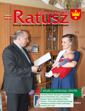 28 marca 2014 EGZ. BEZPŁATNY ISSN 1897-9947 5(152) / 2014 Z wizytą u pierwszego dziecka Prezydent Miasta Starogardu Gdańskiego Edmund Stachowicz wraz z Naczelnikiem Wydziału Spraw Obywatelskich Beatą Tkaczyk – Kurkowską odwiedzili pierwszego STRONA 2 mieszkańca naszego miasta urodzonego w nowym 2014 roku WYDARZENIA | AKTUALNOŚCI |||||||||||||||||||||||||||||||||||||||||||||||||| Odsłonili pamiątkową tablicę W środę, 12 marca, na terenie lapidarium przy ul. Owidzkiej dokonano uroczystego odsłonięcia tablicy upamiętniającej miejsce spoczynku 344 mieszkańców Starogardu, pochowanych w okresie od XVII do XIX wieku na nieistniejącym dziś cmentarzu katolicko-ewangelickim przy alei Jana Pawła II, odkrytym w trakcie prac archeologicznych związanych z budową galerii Neptun. Szczątki przeniesiono na obecne miejsce spoczynku w listopadzie 2013 roku. W uroczystości oprócz władz miasta, gminy i powiatu oraz młodzieży szkolnej udział wziął m. in. archeolog Robert Krzywdziński, który nadzorował prace archeolo- giczne na terenie nieistniejącego już cmentarza. Podczas uroczystości przedstawił on historię miejsca oraz wyniki dotychczasowych badań. Poświęcenia miejsca dokonał proboszcz parafii pw. św. Katarzyny w Starogardzie ks. Witold Kreft. ||||||||||||||||||||||||||||||||||||||||||||||||||||||||||||||||||||||||||||||||||||||||||||||||||||||||||||||||||||||||||||||||||||||||||||||||||||||||||||||||||||| Z wizytą u pierwszego dziecka Prezydent Miasta Starogardu Gdańskiego Edmund Stachowicz wraz z Naczelnikiem Wydziału Spraw Obywatelskich Beatą Tkaczyk – Kurkowską odwiedzili pierwszego mieszkańca naszego miasta urodzonego w nowym 2014 roku Dzieckiem tym jest maleńka Kornelia Natalia, która przyszła na świat 1 stycznia 2014 roku w godzinach porannych, zaś szczęśliwymi rodzicami małej starogardzianki są Państwo Natalia i Karol Bednarek. Rodzice są bardzo szczęśliwi i dumni z narodzin córki tym bar- Szkolenie z pierwszej pomocy W dniach 12 i 13 marca w Publicznej Szkole Podstawowej nr 3 w Starogardzie Gdańskim odbyło się praktyczne szkolenie nauczycieli oraz pracowników administracji i obsługi gminnych publicznych szkół podstawowych i gimnazjalnych nt. „Teoretyczne i praktyczne zasady udzielania pierwszej pomocy”. dziej, że jest to ich pierwsze dziecko. Pani Natalia odebrała z rąk prezydenta upominek dla córki oraz bukiet kwiatów i list gratulacyjny. Rodzicom życzymy radości i satysfakcji płynącej z wychowania dziecka, a małej Kornelii beztroskiego i zdrowego dzieciństwa. Szkolenie zorganizowane zostało przez Wydział Spraw Obywatelskich Urzędu Miasta w ramach przyjętego przez Prezydenta Miasta planu działań w zakresie ochrony ludności, w którym główny nacisk położony jest na popularyzację zagadnień bezpieczeństwa i ochrony ludności – w tym na podnoszenie umiejętności praktycznego udzielania pierwszej pomocy. Cykl takich szkoleń prowadzony jest od kilku lat i z założenia STR. 2 | Nr 5(152)/2014 |STAROGARDZKI RATUSZ ma objąć jak największą liczbę nauczycieli oraz pracowników administracji gminnych szkół i przedszkoli. Pod fachowym okiem instruktorki z Samodzielnego Publicznego Zakładu Opieki Zdrowotnej „Przychodnia Lekarska” w Starogardzie Gdańskim 63 uczestników szkolenia doskonaliło swoją wiedzę na temat udzielania pomocy osobie poszkodowanej, zanim przyjedzie lekarz. |||||||||||||||||||||||||||||||||||||||||||||||||||||||||||| AKTUALNOŚCI Dobrze przygotowują do szkoły 17 marca w Gdyńskim Parku Naukowo-Technologicznym odbyła się uroczystość wręczenia nagród dla laureatów III Konkursu MEN „Mam 6 lat”. W tym roku, tradycyjnie zresztą, starogardzkie działania odnośnie przygotowania dzieci 6-letnich do edukacji szkolnej zostały zauważone i docenione. Rada Rodziców i Miejskie Przedszkole Publiczne Nr 4 otrzymały wyróżnienie na poziomie województwa pomorskiego uzyskując tytuł „Przedszkole dobrze przygotowujące do szkoły” Gratulujemy. Nowe stojaki rowerowe Obok Publicznego Gimnazjum nr 2 im. Adama Mickiewicza stanęły piękne nowe stojaki rowerowe. Jest to wygrana konkursowa w ramach 2 edycji akcji “Kręć kilometry, zaparkuj klimatycznie” przeprowadzonej przez Fundację Allegro All For Planet. Wygraliśmy dzięki wspólnemu wysiłkowi mieszkańców Starogardu, którzy notowali w aplikacji konkursowej swoją aktywność na rowerze, pieszo, czy na rolkach. W ogólnopolskiej rywalizacji województwo pomorskie uzyskało 12 stojaków z czego 6 stanęło w Starogardzie co mówi o wielkim powodzeniu akcji i dużym sukcesie. Czasowe utrudnienia w ruchu Ośrodek Sportu i Rekreacji informuje, iż w dniu 5 KWIETNIA br w związku z organizacją 31. Biegu Szpęgawsk – Starogard nastąpią czasowe utrudnienia w ruchu. W godz. od 11.45 do 13.30 na trasie START z drogi nr 22 - SZPĘGAWSK CAŁKOWITE WYŁĄCZENIE RUCHU - ul. Tczewska, ul. Kanałowa, PARKING PRZED BRAMĄ OSIR Zaleca się również objęcie szczególną opieką czworonogów. Jeżeli psy będą na w/w trasie biegu bez opieki i bez uwięzi, zostaną wyciągnięte konsekwencje w stosunku do właściciela zgodnie z art. 77 Kodeksu Wykroczeń przez STRAŻ MIEJSKĄ i POLICJĘ Zakaz wjazdu nie obowiązuje dla pojazdów uprzywilejowanych – Pogotowie, Straż Pożarna i Policja. Za powstałe niedogodności serdecznie przepraszamy Pytania prosimy kierować: Maria Malinowska 503 070 088 lub Paulina Burczyk 505 266 168, [email protected]. ||||||||||||||||||||||||||||||||||||||||||||||||||||||||||||||||||||||||||||||||||||||||||||||||||||||||||||||||||||||||||||||||||||||||||||||||||||||||||||||||||||| Szpital otrzymał sprzęt z WOŚP Już po raz kolejny Kociewskie Centrum Zdrowia otrzymało z Wielkiej Orkiestry Świątecznej Pomocy specjalistyczne sprzęty medyczne potrzebne do ratowania zdrowia i życia pacjentów. W tym roku sprzęty przekazane zostały na Oddział Neonatologiczny. Fundacja Wielkiej Orkie