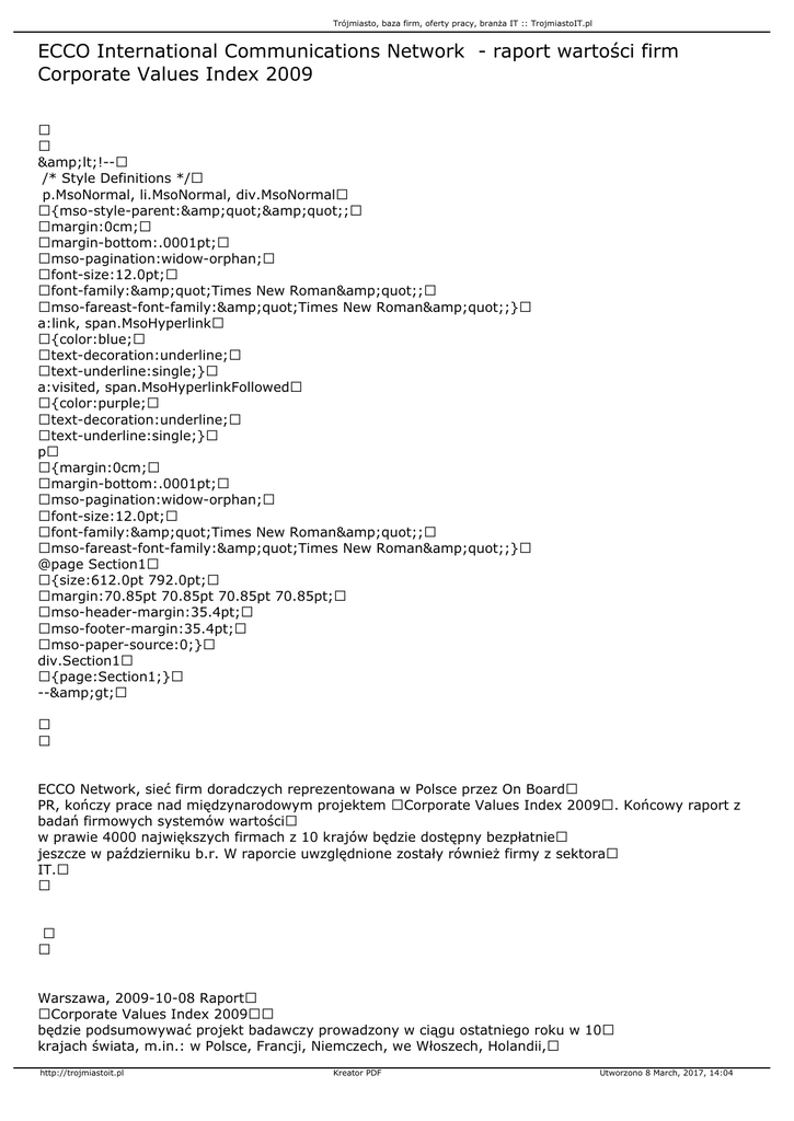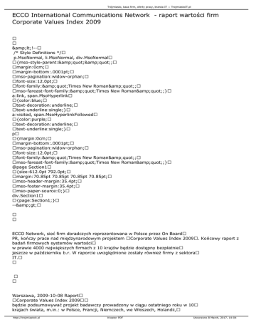 PR, kończy prace nad międzynarodowym projektem Corporate Values Index 2009. Końcowy raport z