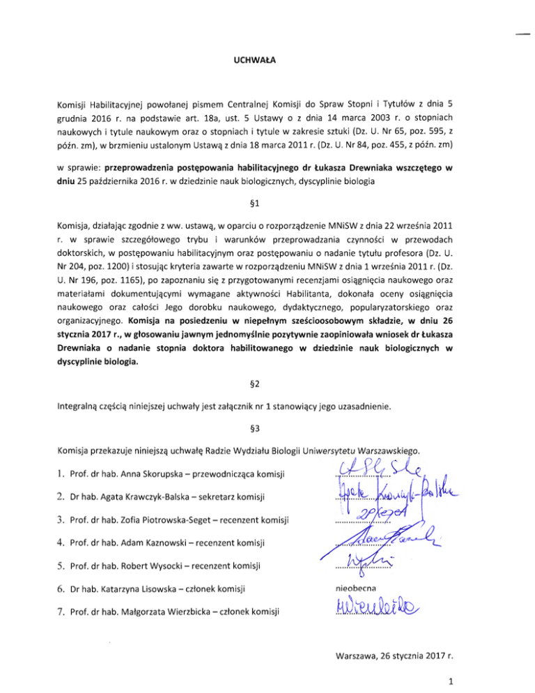 Uchwała Komisji habilitacyjnej wraz z uzasadnieniem