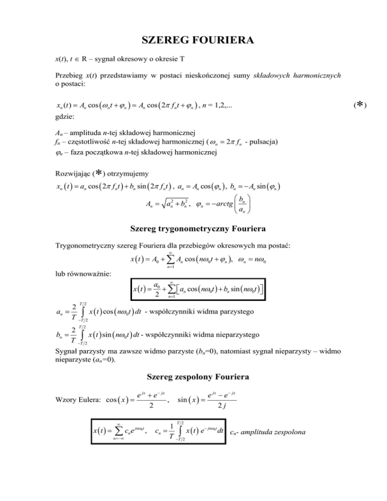 x ( t ) cos ( nω 0t ) dt - współczynniki widma parzystego