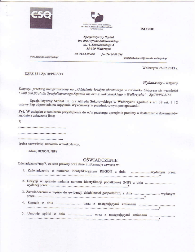 Zaiw¿daen'€o nuheRe REGON