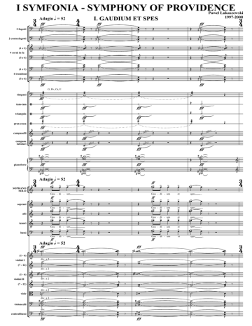I SYMFONIA - SYMPHONY OF PROVIDENCE Paweł Łukaszewski 2 fagotti (1 e 2) 2 contrafagotti 4 corni in fa (3 e 4) (1 e 2) 4 tromboni (3 e 4) timpani tam-tam campane tubolari SOPRANO SOLO soprani violini I fff gl iss. fff fff Adagio q = 52 ff fff div. a 2 violini II (7 - 12) viole violoncelli contrabbassi Gau - di - um ff um Gau - di - Gau - di - Gau - di - div. a 2 div. a 2 div. a 2 div. a 3 div. fff um um Gau - di - um ff q = 52 Adagio (1 - 6) (7 - 12) gliss. gliss. gliss. fff gliss. fff fff fff fff fff fff fff s. glis Gau - di - um ff et ff fff Gau - di - um spes spes et Gau - di - um et Gau - di - um et Gau - di - um ff et spes spes spes fff fff gliss. gliss. fff fff fff fff fff fff fff fff fff fff G, Hb, C#, E fff fff 1997-2008 I. GAUDIUM ET SPES tenori (1 - 6) alti bassi fff pianoforte fff gran cassa campanelli fff triangolo Adagio q = 52 fff , , , , , 2 2 fg f f mp 3 mp 2 cfg 1, 2 cr 3, 4 p 1, 2 p 3, 4 tn tt trg gr c cmp lli pf Ss S B 1-6 vn I mf mp 3 3 p p p p 3 3 p p p mp p p p p p p p unis. a , , a a , a mp p p p , p 3 p mp mp p p p 3 p p A T mp cmp ne tp 3 mf ritenuto p ritenuto a , , a , a a p , mp ritenuto unis. unis. 7-12 unis. vl div. 7-12 1-6 vn II vc cb div. div. mp 2 fg 2 cfg 1, 2 cr a tempo 3, 4 tp trg gr c cmp lli p 1-6 vn I p p p p p p a tempo Ss S B T p A pf p tt cmp ne 1, 2 tn 3, 4 3 10 a tempo pp 7-12 1-6 7-12 vl vn II vc cb pp p p 4 tt trg 2 fg 2 cfg 1, 2 cr 3, 4 1, 2 tn 3, 4 tp cmp ne S p A T B p 1-6 vn I 7-12 1-6 vn II 7-12 p vl vc cb p cmp lli Ss gr c pf mp mp 2 fg 2 cfg 1, 2 cr 3, 4 tn tp tt mp mp mp mp 1-6 mp mp vc 7-12 vl mp 7-12 vn II T mp mp A cb cmp ne vn I cmp lli 1-6 mp gr c B trg S 3, 4 Ss mp 1, 2 pf 5 20 mf mf 6 2 fg 2 cfg 1, 2 cr 3, 4 mf mf tt trg tn 3, 4 tp gr c cmp ne pf Ss S B vn I mf mf mf mf mf mf cb 1-6 vc vl 7-12 7-12 vn II mf 1-6 mf T mf A mf cmp lli mf 1, 2 f f 2 fg 2 cfg 1, 2 cr 7 f f 3, 4 tt trg 1, 2 tn 3, 4 tp gr c pf Ss S cmp ne B f f f f f cb 1-6 vc f vl 7-12 7-12 vn II vn I f 1-6 f T f f A f cmp lli ff ff 8 2 fg 2 cfg 30 ff 1, 2 cr ff 3, 4 1, 2 tn 3, 4 tp ff B 1-6 vn I vc cb ff ff ff ff ff ff ff ff f ff ff ff vl 7-12 1-6 vn II ff 7-12 ff ff T A ff f S ff ff Ss trg pf ff ff cmp ne cmp lli ff tt gr c fff fff fff fff fff fff 2 fg 2 cfg 1, 2 cr 1, 2 tn 3, 4 tp tt fff 3, 4 fff fff pf fff f f fff A T B 1-6 vn I cb f p mf mf p p p r i t e n u t o r i t e n u t o f vc 1-6 mf vl fff 7-12 7-12 vn II fff Ss S fff fff cmp ne f cmp lli gr c 9 r i t e n u t o trg fff f fff fff 10 A meno mosso (q = 42 - 44) 2 fg 2 cfg 1, 2 p cr 3, 4 p 1, 2 tn 3, 4 tp tt trg a2 p p p p p a2 p pp cmp lli pf Ss A meno mosso (q = 42 - 44) mf commoso Gau - di - um mp bocca chiusa S bocca chiusa A T B 1-6 vn I bocca chiusa bocca chiusa et spes p , mp p A meno mosso (q = 42 - 44) lu mp - ctus et p 7-12 1-6 7-12 vl vn II vc cb an p mp p gr c cmp ne p 40 - gor pp unis. pp 2 fg 2 cfg 1, 2 cr 3, 4 tp 1, 2 p 1. 3. 1. 3. p tt 3, 4 tn 11 p gr c cmp lli trg cmp ne pf Ss S T 1-6 vn I 7-12 1-6 vn II - hu mi - num 3 - 3 ius tem - po - vl a , a p , spes a et f a, a, a, div. div. div. div. unis. unis. f a, f f sunt , Gau - di - um 3 a cb 3 , , p ris f f 7-12 vc ho A B ad libitum (poco) p 12 p o c o 2 fg a p o c o a c c e l e r a n d o 50 tt trg gr c cmp lli 2 cfg 1, 2 cr 3, 4 1, 2 tn 3, 4 tp cmp ne pf Ss p o c o mf lu S A T B vn I - ctus 3 et an - gor , p bocca chiusa bocca chiusa bocca chiusa bocca chiusa p 7-12 1-6 vn II vc cb 7-12 vl mf 3 e - ti - am Chri mf 1-6 a p o c o mp mp - sti 3 mp mf a 3 - p o c o ff ff gliss. a gliss. gliss. gliss. (m) a (m) a a ff (m) f a c c e l e r a n d o f ff mf div. div. div. mf rum f fff (m) p o c o sfp a c c e l e r a n d o dis - ci - pu - lo mf 3 f ff 2 fg 2 cfg 1, 2 cr 3, 4 1, 2 tn 3, 4 tp tt cmp ne B 1-6 vn I fff vn II , Gau - di - um fff vl vc unis. div. a 3 fff gliss. gliss. Gau - di - um Gau - di - um fff f f mp 3 mp fff . gliss . gliss fff Gau - di - um et Gau - di - um Gau - di - um spes Gau - di - um et Gau - di - um et , , spes , spes , p mp mp pp spes mp pp p mp fff 3 et et p mp pp mp 3 p , ritenuto mf a, a, a, a, mf mf mp unis. unis. unis. div. div. div. mf mp a a a ritenuto mp a mp unis. p p spes 3 mf mf p mf mf ritenuto fff fff Gau - di - um fff Gau - di - um fff fff Tempo I (q = 52) fff fff 7-12 fff 1-6 fff I (q = 52) Tempo 7-12 cb , , , fff fff , fff fff fff . gliss T . gliss A 13 Ss S pf gr c cmp lli fff trg Tempo I (q = 52) 14 2 fg poco più mosso (q = 60) 2 cfg 1, 2 cr 3, 4 1, 2 tn 3, 4 tp mf tt vn II 7-12 f poco più mosso (q = 60) , , mf o vc cb vl f f o , o o , , o mf o o , o , o , o sfp muta in F, G, A, E , , , , o o o o , f , , sfp mf f 1-6 f poco più mosso (q = 60) 7-12 , vn I , 1-6 Ss B 60 f T ff A sfp mf S gr c pf f trg cmp ne ff mf cmp lli sfp o o o , o 15 ff ff 2 fg 2 cfg 1, 2 cr mp ff 3, 4 mp 1, 2 tn 3, 4 ff tp ff mp mp tt trg gr c cmp lli cmp ne pf Ss S , A T B , , , div. 1-6 vn I 7-12 vn II 7-12 div. vc cb vl div. div. 1-6 16 2 fg 2 cfg 1, 2 cr 3, 4 1, 2 tn 3, 4 tp tt trg gr c cmp lli mf mf pf f f Ss S A T B 1-6 vn I 7-12 1-6 vn II 7-12 vc cb vl mf o sfp o , , , , o o , , o , f o sfp , , , o , , o o o o sfp mf , , o mf ff o f ff o f mf f cmp ne sfp o o o o 17 ff ff 2 fg 2 cfg 1, 2 cr 70 ff 3, 4 mf mf 1, 2 ff tn 3, 4 tp ff mf mf tt trg gr c cmp lli cmp ne pf Ss S , A T B , , , 1-6 vn I 7-12 1-6 vc cb vn II 7-12 vl 18 ancora più mosso (q = 66 - 70) 2 fg 2 cfg 1, 2 cr 3, 4 1, 2 tn 3, 4 tp sfp fff sfp fff B vn I 7-12 1-6 vn II 7-12 sfp fff ff ff ancora più mosso (q = 66 - 70) f Gau Gau ff ff ff di di f um sfp sfp um um um , a di di ff fff sfp fff Gau ff sfp Gau , a ff ff vc ff cb ff vl ancora più mosso (q = 66 - 70) 1-6 ff T f A ff gr c S fff mf Ss sfp trg pf f cmp ne tt cmp lli spes spes spes spes 19 fff 2 fg 2 cfg 1, 2 cr 3, 4 1, 2 tn 3, 4 fff tp tt ff sempre gr c cmp lli pf Ss S A T B 1-6 vn I 7-12 1-6 vn II 7-12 cmp ne sfp fff sfp fff sfp fff lu lu sfp sfp fff fff , ff ctus , a ctus ff an ctus ctus , a an sfp ff an an sfp lu lu a ff vl vc cb fff f trg sfp 80 , a gor gor gor gor fff fff 20 fff 2 fg 2 cfg 1, 2 cr 3, 4 