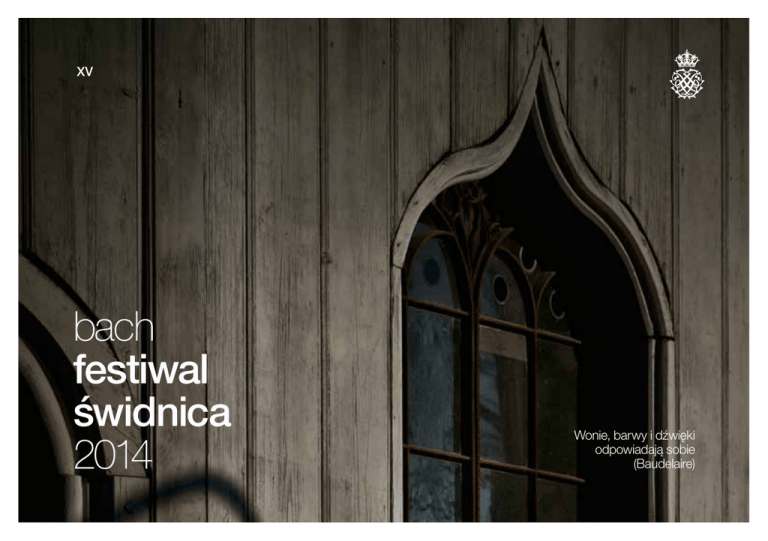 XV bach festiwal świdnica 2014 Wonie, barwy i dźwięki odpowiadają sobie (Baudelaire) XV bach festiwal świdnica 2014 / 1 Wonie, barwy i dźwięki odpowiadają sobie B a u d e l a i re C hodzi o wrażliwość. O imponderabilia - rzeczy nieuchwytne, trudne do opisania, ale mające wielkie znaczenie. Chodzi o każdego słuchacza, jego obecność i emocje. O odróżnianie od siebie zjawisk, ludzi, idei. O dostrzeganie różnorodności, która nie jest zagrożeniem, ale szansą. Chodzi także o ograniczenia, pewne ramy, porządek, który nazywamy kulturą. Chodzi o dążenie do piękna, formowanie standardów i wartości. Zamek z wieżami, tarasami, zadbanymi ogrodami i parkami, jak wyspa najwspanialszej kultury, leżał pośród bezdrzewnych, żyznych pól i łąk. Latem łany zbóż tworzyły wkoło bezkresne, falujące morze. Ta wielka posiadłość i pańska siedziba robiły wrażenie niemal jak z bajki. Śląsk posiadał jednak wiele takich bajek, cudów tysiąca i jednej nocy, które prowincja ta ukształtowała i które są świadectwem najwyższej kultury w Europie. G e r h a r t H AU P T M A N N S t r z a ł w p a r k u 19 3 9 Ten cytat pojawił się już w tekście wstępnym do jednej z poprzednich edycji festiwalu. Warto do niego wracać, ponieważ przypomina on, że jako spadkobiercy tej kultury jesteśmy zobowiązani ją pielęgnować. Czynimy to organizując festiwal organiczny, czyli osadzony w nowocześnie pojmowanej tradycji oraz w konkretnym kontekście kulturowym. Festiwal rozumiany jako święto muzyki, publiczności i artystów. Festiwal wyjątkowy poprzez wyraźnie wyczuwalną określoną wrażliwość. Festiwal otwiera piknik romantyczny. To przez Mendelssohna, Schoenberga i tych wszystkich, którzy bywali na Dolnym Śląsku: Wagnera, Brahmsa, Webera, Goethego, Eichendorfa, Chopina. Słowo „romantyczny” każdy rozumie inaczej. Słowo „piknik” również. Festiwal Bachowski zawsze unikał dosłowności, ale w tym przypadku oczyszczające będzie dostrzeżenie oryginalnych znaczeń tych słów i powiązanie ich z własnym światem wrażeń: smak, zachwyt, porowatość, zapach, bliskość, wzruszenie, dotyk, nawoływanie, intymność, krajobraz, zauroczenie, wiatr, światłocień, pożegnanie, szept, cisza, ja. Ten zestaw słów można nazwać pretensjonalnym. Ale to dlatego, że się ich wstydzimy. Takie czasy. Czy Państwo wiedzą jak pachnie wnętrze Kościoła Pokoju? Festiwal Bachowski w Świdnicy to jeden z najlepszych adresów kulturalnych w Europie. Bach jest tylko prestekstem. Chodzi o wrażliwość, o imponderabilia. Chodzi o zapachy, barwy, dźwięki, smaki i emocje. (jta) XV bach festiwal świdnica 2014 / 3 4 / bach.pl XV bach festiwal świdnica 2014 / 5 piątek 25 VII N 19.30 MAKOWICE - KOŚCIÓŁ / PARK PAŁACOWY piknik romantyczny MENDELSSOHN Lieder im Freien zu singen | Pieśni do śpiewania na wolnym powietrzu SCHOENBERG Verklärte Nacht | Przemieniona noc FRANZ MARC ENSEMBLE 2h z jedną przerwą ‣ wprowadzenie do koncertu ‣ dostępny płatny bufet festiwalowy / mile widziane własne kosze piknikowe z ulubionymi przekąskami * ‣ stroje piknikowe preferowane t bilety: 15 pln / 5 pln sobota 26 VII N 18.00 KOŚCIÓŁ POKOJU johann sebastian BACH kantaty AKADEMIA BACHOWSKA Andrew Parrott 2h z jedną przerwą ‣ dostępny płatny bufet w Baroccafe / mile widziane własne kosze piknikowe z ulubionymi przekąskami * ‣ stroje koktajlowe preferowane t bilety: 20 pln / 10 pln N 21.00 DAWNY KOŚCIÓŁ ZIMOWY mozart party MOZART Divertimento Es-dur HAYDN Kwartet d-moll MOZART Kwintet waltorniowy Es-dur Beata Nawrocka skrzypce Elżbieta Górka skrzypce, altówka Teresa Wydrzyńska altówka Konrad Górka wiolonczela Paweł Dziewoński róg 2h z jedną przerwą ‣ aperitif ‣ stroje koktajlowe mile widziane t bilety: 10 pln / 5 pln niedziela 27 VII N 10.00 KOŚCIÓŁ POKOJU muzyka w liturgii BACH kantaty 6 / bach.pl AKADEMIA BACHOWSKA Andrew Parrott t wstęp wolny N 13.00 KATEDRA muzyka w liturgii PĘKIEL Missa pulcherrima THE SOUND GUARDIANS t wstęp wolny N 18.00 KOŚCIÓŁ POKOJU johann sebastian BACH Die Kunst der Fuge AKADEMIE FÜR ALTE MUSIK BERLIN & AKADEMIA BACHOWSKA 2h z jedną przerwą ‣ dostępny płatny bufet w Baroccafe / mile widziane własne kosze piknikowe z ulubionymi przekąskami * ‣ stroje koktajlowe preferowane t bilety: 20 pln / 10 pln poniedziałek 28 VII N 19.30 KOŚCIÓŁ POKOJU szewski poniedziałek Georg Philipp TELEMANN Antonio VIVALDI Johann Sebastian BACH V Koncert Brandenburski Johann Gottlieb JANITSCH (urodzony w Świdnicy twórca europejskiej tradycji piątkowych koncertów filharmonicznych) ORKIESTRA FESTIWALOWA Marcin Świątkiewicz klawesyn 2h z jedną przerwą ‣ dostępny płatny aperitif w Baroccafe ‣ stroje koktajlowe mile widziane t bilety: 20 pln / 10 pln wtorek 29 VII N 19.30 DAWNY KOŚCIÓŁ ZIMOWY stara europa BEETHOVEN Trio D-dur op. 70.1 CHOPIN Trio g-moll op. 8 Maciej Czepielowski skrzypce Teresa Kamińska wiolonczela Mariusz Klimsiak fortepian historyczny 2h z jedną przerwą ‣ stroje koktajlowe mile widziane t bilety: 20 pln / 10 pln środa 30 VII N 19.30 KOŚCIÓŁ ŚW. KRZYŻA N 21.00 KOŚCIÓŁ ŚW. JÓZEFA N 22.15 KOŚCIÓŁ POKOJU maraton koncertowy - klawesyn klawikord fisharmonia organy Marek Toporowski wprowadzenia do koncertu ‣ po drodze dostępny płatny aperitif w restauracji Rynek 43 (zniżka za okazaniem biletu) ‣ zakończenie ca. 23.00 t bilety: 20 pln / 10 pln czwartek 31 VII N 19.30 RESTAURACJA RYNEK 43 divertimento Druschetzky Mozart LOTZ TRIO Robert Šebesta bassethorn Ronald Šebesta bassethorn Sylvester Perschler bassethorn sobota 2 VIII N 18.00 KOŚCIÓŁ POKOJU opera półscenicznie PURCELL Dido & Aeneas Maria Hinojosa - Dido / Richard Helm - Aeneas Stephanie True - Belinda / Iason Marmaras - Czarownica CHÓR I ORKIESTRA FESTIWALOWA Fabio Bonizzoni 1h bez przerwy ‣ dostępny płatny bufet festiwalowy w Baroccafe / mile widziane własne kosze piknikowe z ulubionymi 