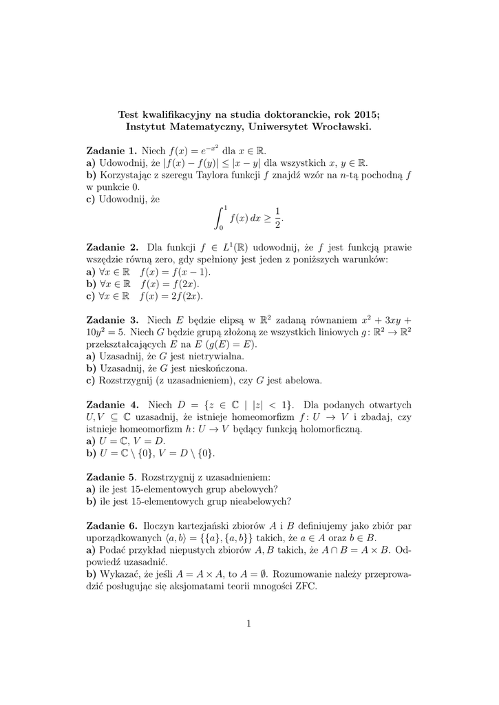 Test kwalifikacyjny na studia doktoranckie, rok 2015;