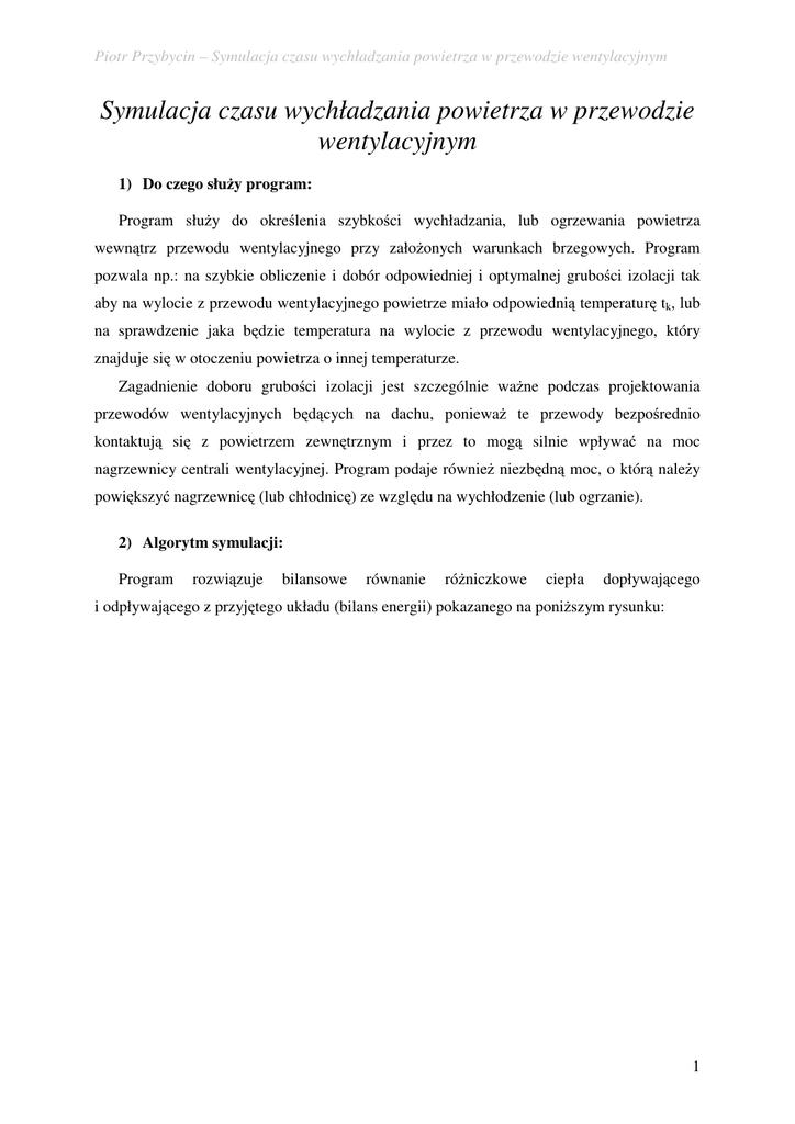 Symulacja czasu wychładzania powietrza w przewodzie - Cad