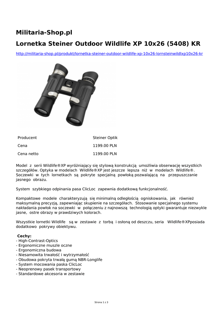 Militaria-Shop.pl Lornetka Steiner Outdoor Wildlife XP 10x26 (5408