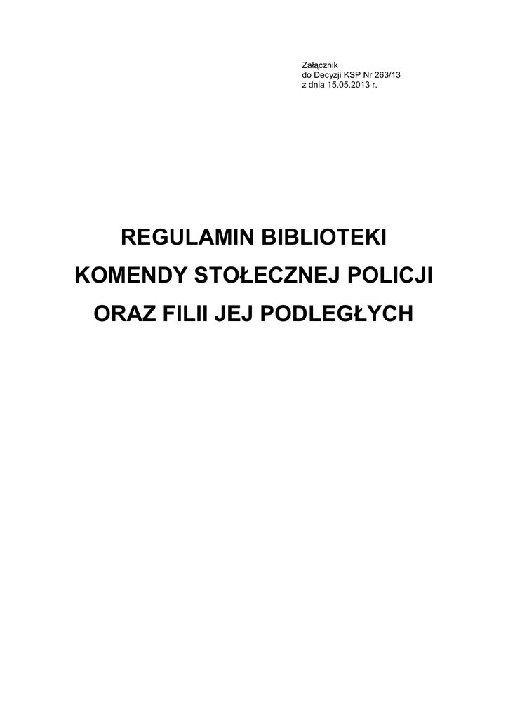 regulamin biblioteki komendy stołecznej policji oraz filii jej podległych