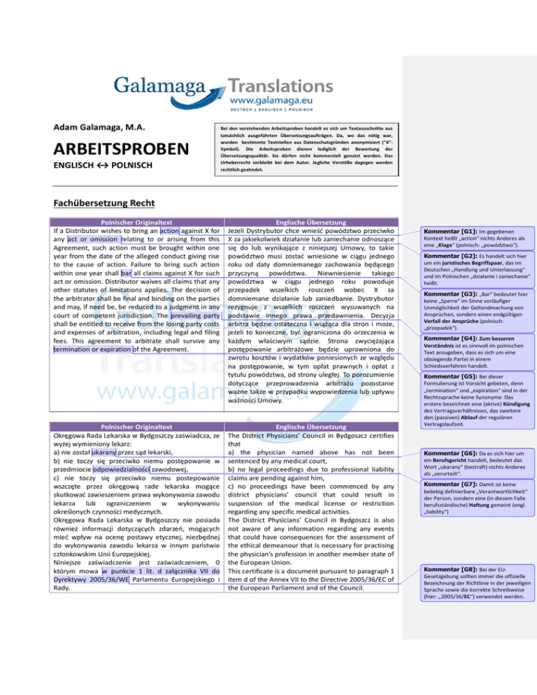 tatsächlich ausgeführten Übersetzungsaufträgen. Da, wo das nötig war,