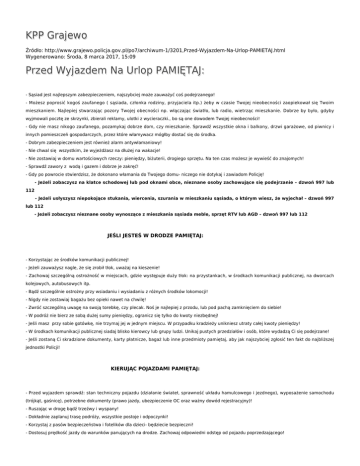 KPP Grajewo Przed Wyjazdem Na Urlop PAMIĘTAJ:
