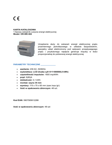 KARTA KATALOGOWA 1-fazowy wskaźnik zużycia energii
