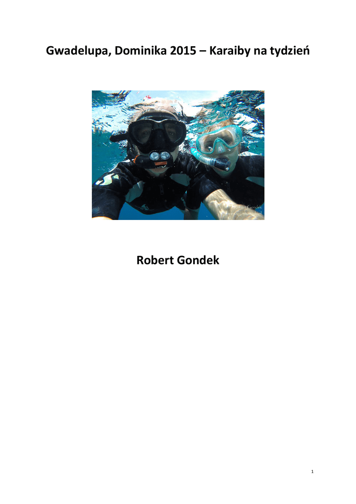 Gwadelupa, Dominika 2015 – Karaiby na tydzień Robert Gondek 1 Na Karaiby! Po raz pierwszy na Karaiby! Kupiłem bilet na Gwadelupę. Lecę z Agnieszką. Krótka odmiana od Afryki. Krótka, bo kilka dni później kupiłem następny bilet. W Nowy Rok lecę do Etiopii. A może odwiedzę jeszcze jeden kraj w okolicy? Tymczasem Gwadelupa już czeka. Ciężko powiedzieć, czy mamy wszystko zaplanowane, czy jest to spontaniczny wyjazd. Wiemy, co jest ciekawego na Gwadelupie. Ale jest tego więcej niż mamy czasu. Na miejscu zdecydujemy. Tym bardziej, że przy okazji odwiedzimy jeszcze jedno państwo – wyspę. Popłyniemy na Dominikę. Dominika zawsze kojarzyła mi się z totalną egzotyką. Na krótko, bo zaledwie na 4 dni. Przekonam się w końcu, jak wygląda karaibska dżungla w kraju z flagą z papugą – Sisserou (Amazonka cesarska). To jeden z endemicznych gatunków żyjących na Dominice. Oczywiście nie omieszkam wybrać się na obserwację papug w dżungli. A zatem w drogę! Chwila w Paryżu Przed nami długi lot. Z całonocną przesiadką w Paryżu. Szkoda, że całonocna, bo chociaż będziemy w Paryżu to czasu na zwiedzanie zbyt dużo nie będzie. Zastanawiam się, czy uda mi się kiedyś spakować w naprawdę niewielki plecak podręczny. Tym razem to się nie udało. I plecak podręczny waży prawie tyle, co plecak duży. Co ja tam wiozę? Jesteśmy pod wrażeniem paryskiego metra. Sieć podziemnych tuneli pozwala dostać się wszędzie, w zasadzie bez wychodzenia spod ziemi. Sprawnie docieramy do stacji Voltaire. Po prawie godzinie i dwóch podziemnych przesiadkach wychodzimy z tuneli. Rześko. Pochmurno. Dostajemy pokój w hotelu na szóstym, ostatnim piętrze. Bez windy. Trenuję wejście na górę trzy razy. Raz z plecakiem i Agnieszką. Drugi raz, gdy schodzę w poszukiwaniu zasięgu WIFI i wracam. Trzeci, gdy wracam z butelką francuskiego wina. Dobrze robi na sen. A i rano smakuje nie gorzej. Przed wymarszem kończymy butelkę i idziemy w stronę katedry Notre Dame. Zaczyna padać. Coraz mocniej. Niezbyt to piękny poranek. Mamy trochę szczęścia, bo po paru chwilach przestaje padać. Wiatr przewiewa chmury i na horyzoncie dostrzegamy błękitne niebo. 2 Jeszcze chwila i Paryż rozbłyśnie porannymi kolorami. Akurat docieramy do katedry. Wszystko pięknieje w jednej chwili. Słońce wystarcza, aby zrobiło się ładniej. Zwykłe ulice stają się świetnym tematem fotograficznym. I rzeka. No i oczywiście katedra. Gdzieś z daleka dostrzegamy kontury wieży Eiffla. Czas jednak goni. To nie Paryżem mamy się zachwycać podczas tej podróży. Lecimy przecież na Gwadelupę. Schodzimy do podziemi i linią RER B docieramy na przedmieścia. Tu przesiadka w zautomatyzowaną kolejkę ORLYVAL, która wiezie nas prosto na lotnisko Paryż Orly. Za oknami przepięknie oświetlone wciąż porannym słońcem chmury. Złota poranna godzina jeszcze trwa. W drodze na Gwadelupę Wrzesień to na Gwadelupie pora deszczowa. To także pora huraganów. To zapewne tłumaczy dlaczego bilety o tej porze roku są w promocji i kosztują mniej niż 2000 zł. To pewnie też tłumaczy sporą ilość wolnych miejsc w samolocie. Mamy trzy miejsca dla siebie. Osiem godzin lotu minie wygodniej. Ale to wciąż osiem godzin na tyłku. Przez ten czas cofamy się w czasie. O sześć godzin. Taka jest różnica czasu pomiędzy Polską i Gwadelupą. Lot upływa nieźle. Podają nam jeden z najlepszych posiłków, jaki jadłem w samolocie. Kawałki kurczaka w sosie z drobno posiekanymi opiekanymi ziemniakami. No i podają karaibski rum w małych buteleczkach. W zasadzie to nie rum tylko punch, czyli rum z sokiem owocowym. Jest dobry. Słodki. Takich trunków spodziewam się na Gwadelupie. Z tego zresztą między innymi Gwadelupa słynie. Ocean Atlantycki jest ogromny. Lecimy i lecimy. Dzięki temu obserwujemy całe spektrum krajobrazów. Spokojna, wręcz równa jak lustro tafla wody. Pojedyncze białe obłoki, które wyglądają jak pływające kawałki kry lodowej. To znów wszystko tonie w gęstych burych chmurach. Pewnie leje deszcz i jest burza. A to znowu pojedyncze chmurki zwiastujące nijaką pogodę. Gdy zbliżamy się do 3 Karaibów chmur przybywa. Jest buro i szaro. Nie tak wyobrażamy sobie Karaiby. To pora deszczowa. Tak sobie to tłumaczę. Może to normalne. Może to prawidłowy krajobraz. Gwadelupa tonie w chmurach. Zbliżamy się powoli do zielonych wysp. Widać, że ostatnio musiało sporo padać. Sporo wody, kałuż, podmokłych terenów. Czy tak jest codziennie? Oby nie. Deszczowe Karaiby Po wyjściu z samolotu uderza w nas wilgoć i jednocześnie gorące powietrze. Wilgotność 100%. Tu przez cały rok, w dzień i w nocy temperatura oscyluje wokół 30 stopni. I ta wilgoć. Od razu jestem mokry. Wystarcza chwila. Nie trzeba wysiłku. Wypożyczyliśmy samochód. Niewielkie Renault Twingo za 100 euro na 3 dni. W zasadzie na prawie 4. Dzięki temu nie będziemy się martwić, jak dojechać tam, gdzie chcemy. Wszystko pójdzie sprawniej. Szczególnie, że wciąż jeszcze zastanawiamy się, co robić, co zwiedzać i dokąd pojechać pierwszego dnia. Pochmurne niebo nie nastraja optymistycznie. A popołudniowa pora podpowiada, że lepiej, jak pojedziemy na „lewą” wyspę, patrząc na mapę od dołu. Czyli na Basse – Terre. Gwadelupa to kilka wysp, a w śród nich dwie największe Basse – Terre i Grande – Terre, oddzielone od siebie słoną rzeką. W kształcie przypominają skrzydła motyla. Jedziemy więc na lewe skrzydło. Po raz pierwszy wypożyczyłem samochód, nie wiedząc co jest zapisane w umowie. Umowa po francusku. Obsługa mówi tylko po francusku. Wydaje się, że nie ma czego się obawiać. Może tylko tak się wydaje, bo przecież nie wiem co podpisałem. Nie ma co się przejmować. Trzeba zwiedzać. Ruszamy na Basse – Terre. Jest pochmurno i mokro. Nieźle lało. Stajemy obok mokrej, zamglonej, pomarańczowej plaży. Ociekające deszczem palmy pochylają się nad p