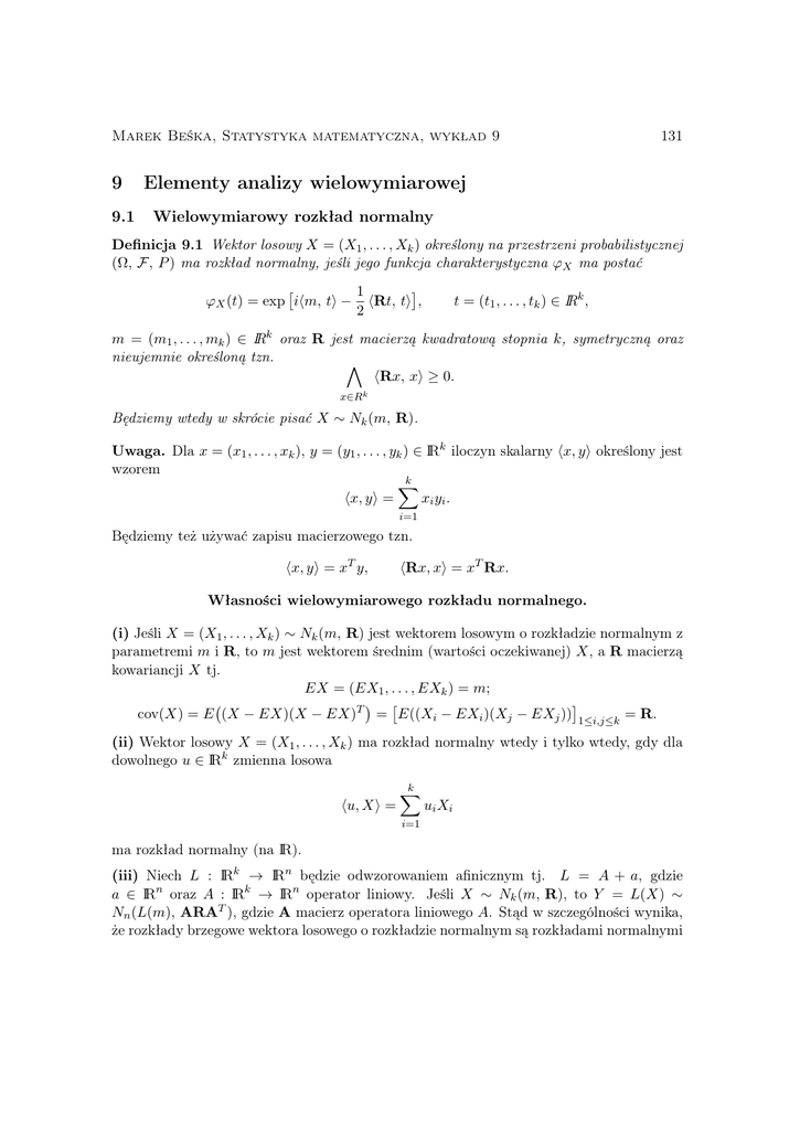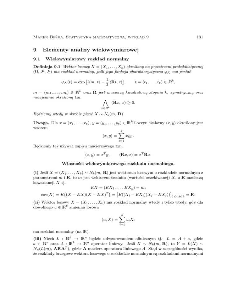 Definicja 9.1 Wektor losowy X = (X1 , . . . , Xk ) określony na przestrzeni probabilistycznej
