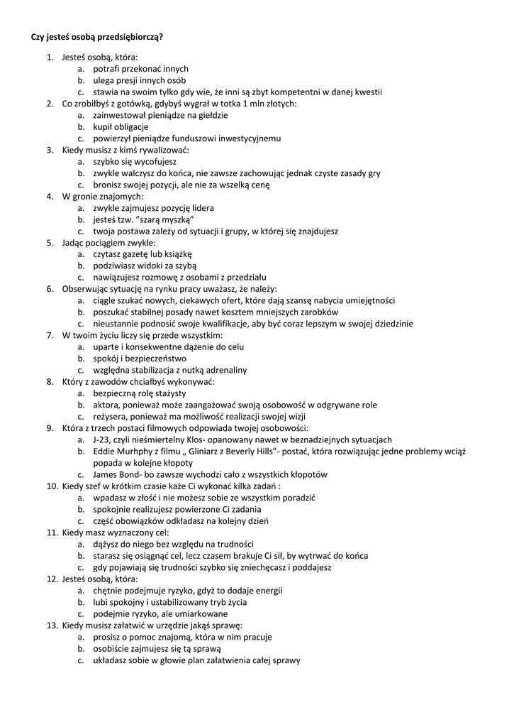 Czy jesteś osobą przedsiębiorczą? 1. Jesteś osobą, która