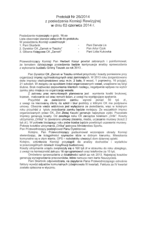 Protok6f Nr 26/2014 z posiedzenia Komisji Rewizyjnej w