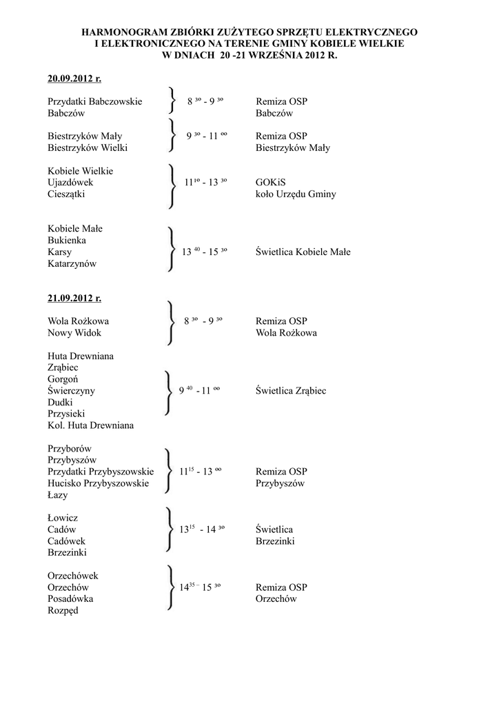 HARMONOGRAM ZBIÓRKI ZUŻYTEGO SPRZĘTU