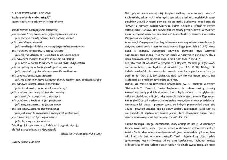 O. ROBERT WAWRZENIECKI OMI Kapłana nikt nie może zastąpić