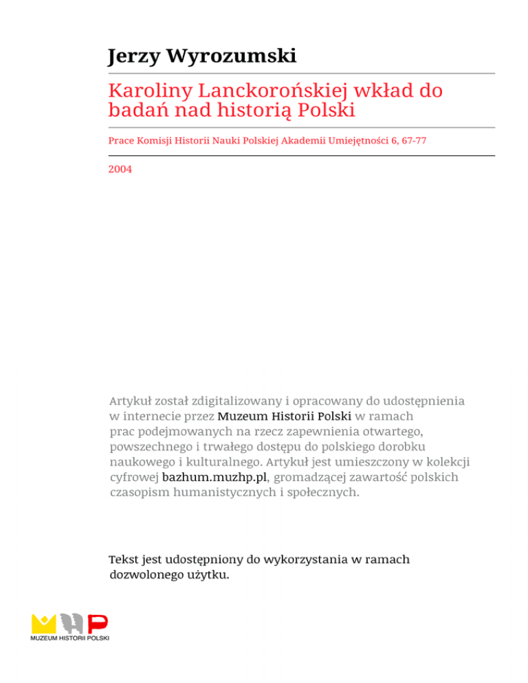 KAROLINY LANCKOROŃSKIEJ WKŁAD DO BADAŃ