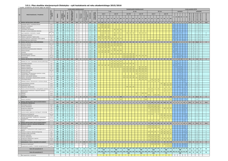 3.5.1. Plan studiów stacjonarnych Dietetyka