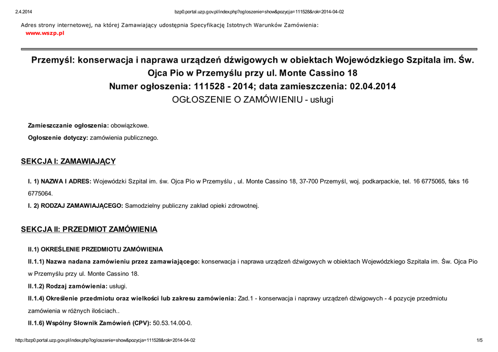 Ogoszenie_o_zamwieniu - Wojewódzki Szpital im. Św. Ojca Pio
