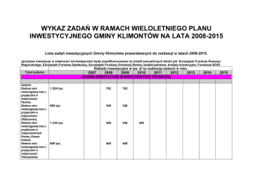 WYKAZ ZADAŃ W RAMACH WIELOLETNIEGO PLANU