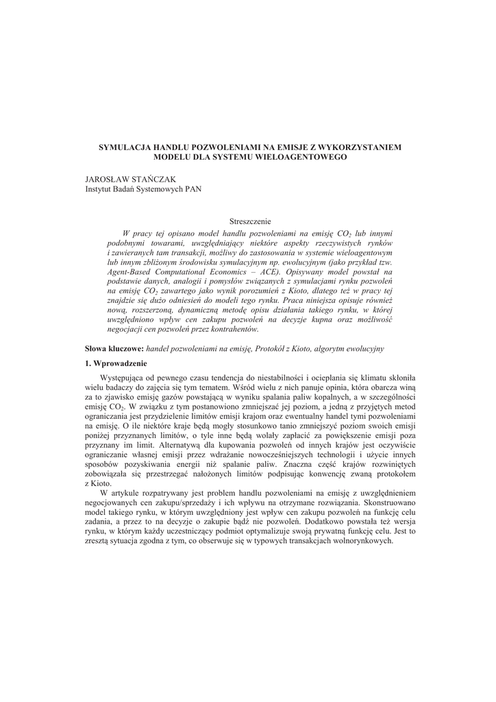 Słowa kluczowe: handel pozwoleniami na emisj, Protokół z Kioto, algorytm ewolucyjny
