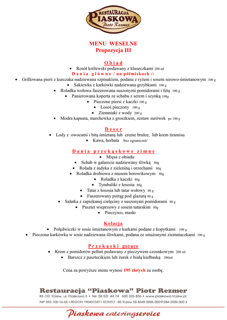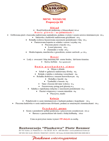 Menu weselne III plik PDF - Restauracja Piaskowa Tczew
