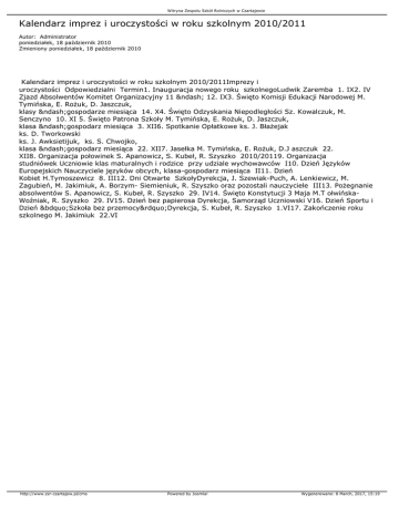 Kalendarz imprez i uroczystości w roku szkolnym 2010/2011
