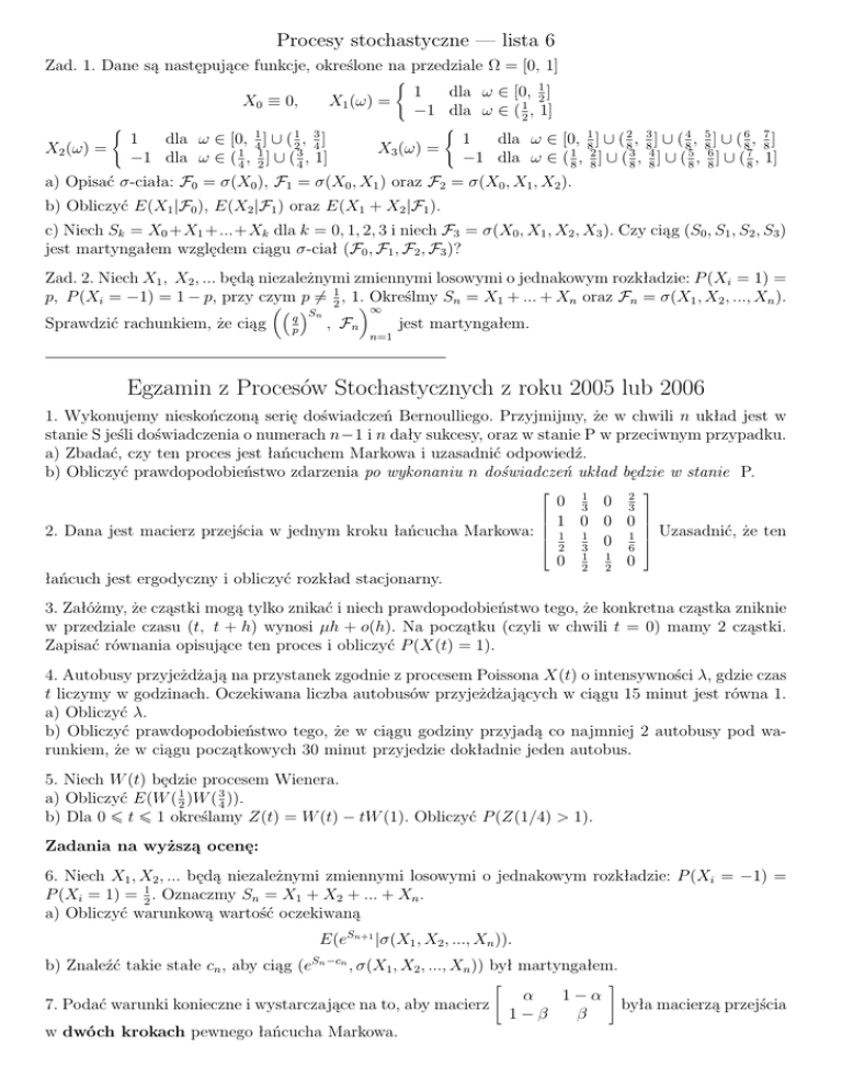 Egzamin z Procesów Stochastycznych z roku 2005 lub 2006