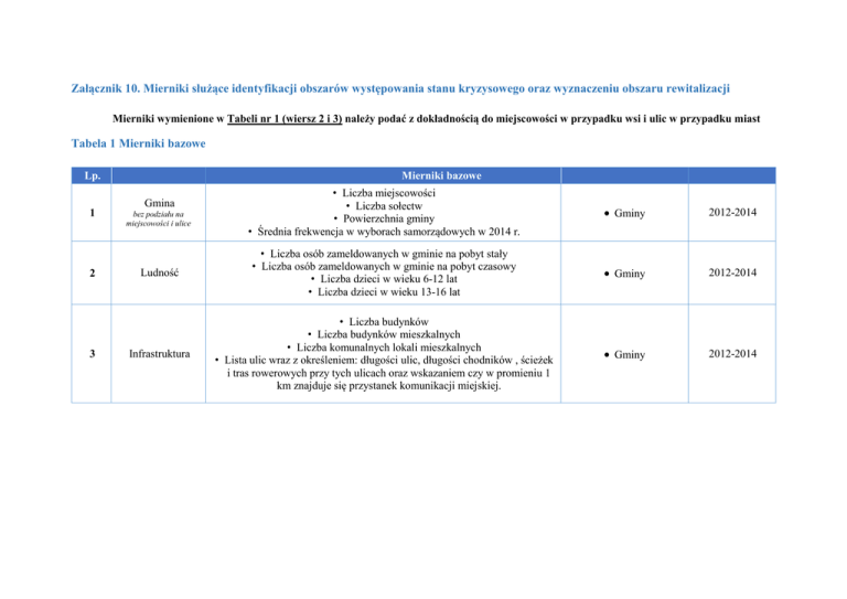Załącznik 10. Mierniki służące identyfikacji obszarów występowania