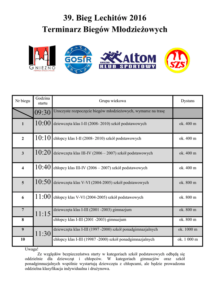 39. Bieg Lechitów 2016 Terminarz Biegów Młodzieżowych