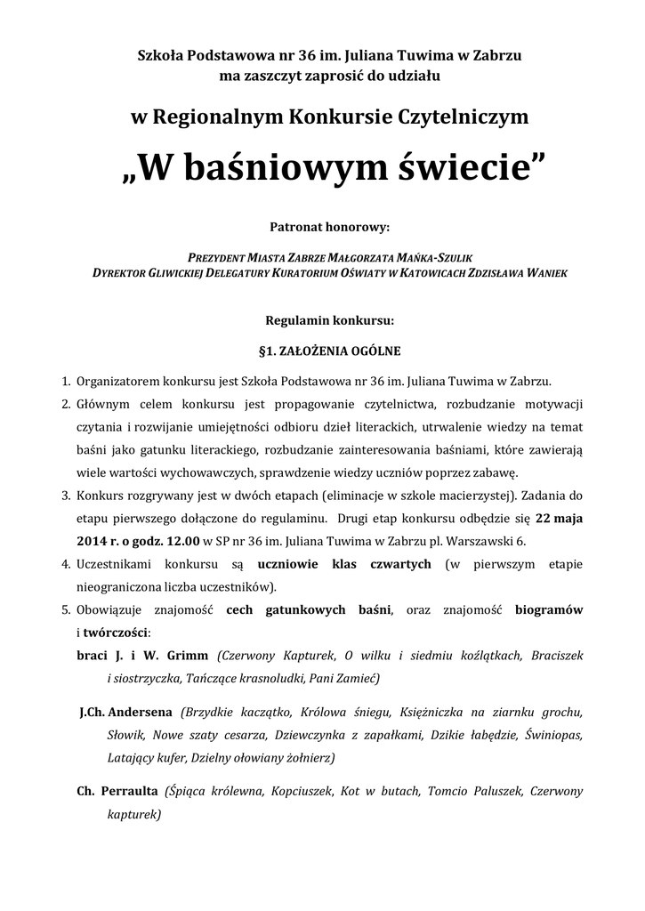 Regulamin konkursu - Szkoła Podstawowa nr 36