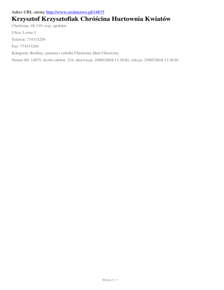 Krzysztof Krzysztofiak Chroscina Hurtownia Kwiatow