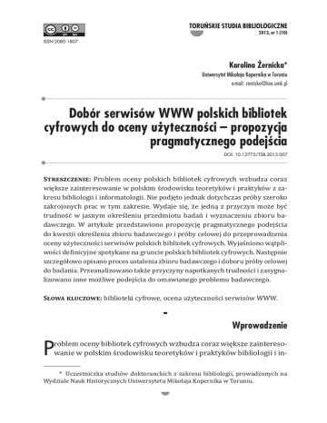 dobór serwisów WWW polskich bibliotek cyfrowych do oceny