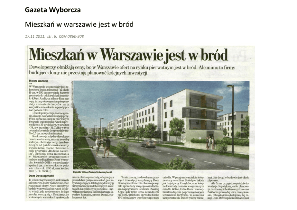Gazeta Wyborcza Mieszkań w warszawie jest w bród 17.11.2011, str. 6, ISSN 0860-908