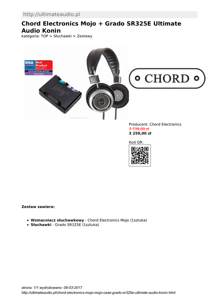 Chord Electronics Mojo + Grado SR325E Ultimate Audio Konin