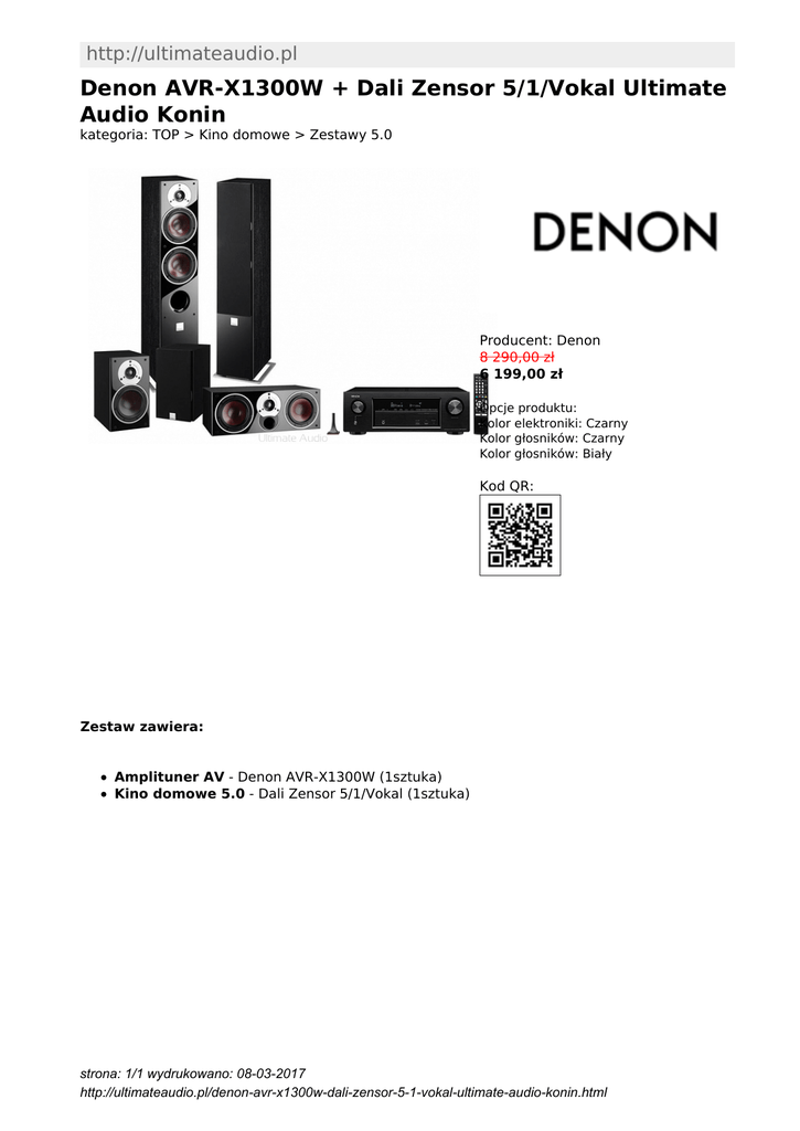 http://ultimateaudio.pl Denon AVR-X1300W + Dali Zensor 5/1/Vokal Ultimate Audio Konin kategoria: TOP > Kino domowe > Zestawy 5.0 Producent: Denon 8 290,00 zł 6 199,00 zł Opcje produktu: Kolor elektroniki: Czarny Kolor głosników: Czarny Kolor głosników: Biały Kod QR: Zestaw zawiera: Amplituner AV - Denon AVR-X1300W (1sztuka) Kino domowe 5.0 - Dali Zensor 5/1/Vokal (1sztuka) strona: 1/1 wydrukowano: 08-03-2017 http://ultimateaudio.pl/denon-avr-x1300w-dali-zensor-5-1-vokal-ultimate-audio-konin.html