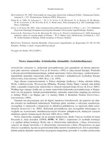 Nowe stanowisko Aristolochia clematitis (Aristolochiaceae)