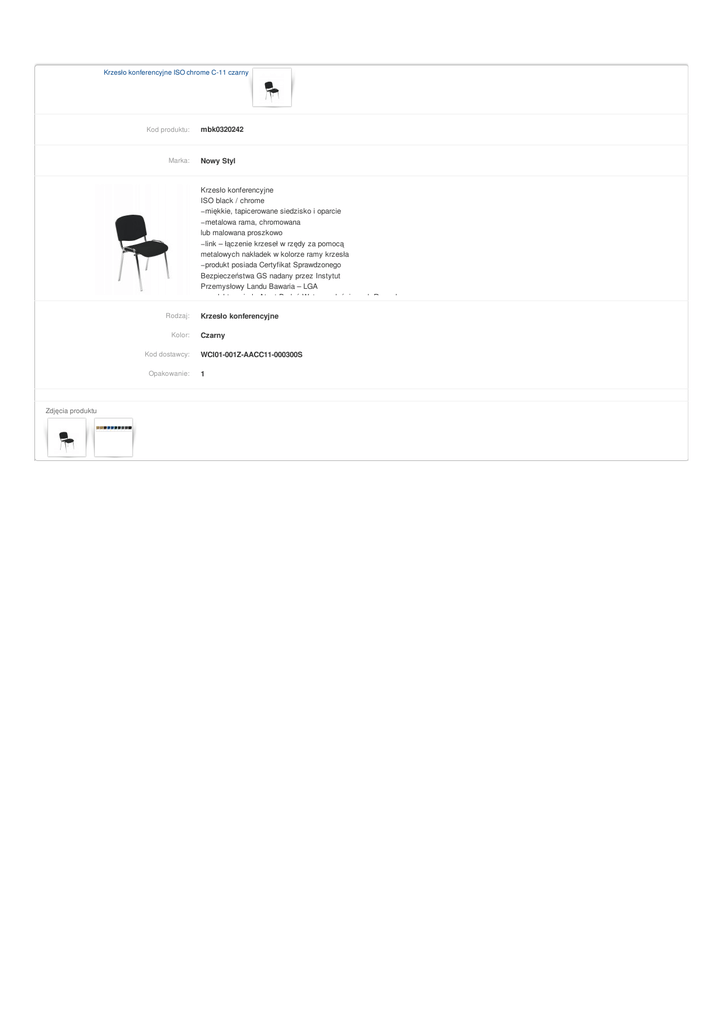 Krzesło konferencyjne ISO chrome C-11 czarny Kod produktu: Marka: mbk0320242 Nowy Styl Krzesło konferencyjne ISO black / chrome −miękkie, tapicerowane siedzisko i oparcie −metalowa rama, chromowana lub malowana proszkowo −link – łączenie krzeseł w rzędy za pomocą metalowych nakładek w kolorze ramy krzesła −produkt posiada Certyfikat Sprawdzonego Bezpieczeństwa GS nadany przez Instytut Przemysłowy Landu Bawaria – LGA −produkt posiada Atest Badań Wytrzymałościowych Remodex Rodzaj: Kolor: Kod dostawcy: Opakowanie: Zdjęcia produktu Krzesło konferencyjne Czarny WCI01-001Z-AACC11-000300S 1