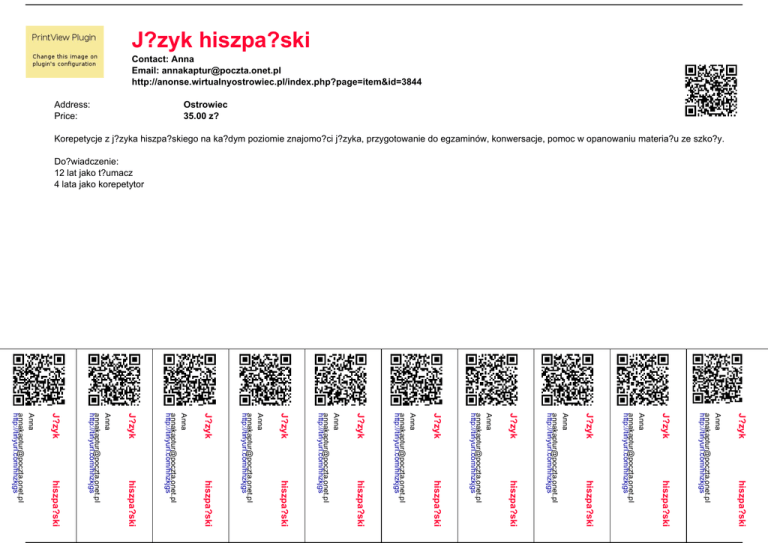 J?zyk hiszpa?ski Contact: Anna Email: [email protected] http://anonse.wirtualnyostrowiec.pl/index.php?page=item&id=3844 J?zyk hiszpa?ski hiszpa?ski Anna [email protected] http://tinyurl.com/hhzkjgs J?zyk hiszpa?ski Anna [email protected] http://tinyurl.com/hhzkjgs J?zyk hiszpa?ski Anna [email protected] http://tinyurl.com/hhzkjgs J?zyk hiszpa?ski Anna [email protected] http://tinyurl.com/hhzkjgs J?zyk hiszpa?ski Anna [email protected] http://tinyurl.com/hhzkjgs J?zyk hiszpa?ski Anna [email protected] http://tinyurl.com/hhzkjgs J?zyk hiszpa?ski Anna [email protected] http://tinyurl.com/hhzkjgs J?zyk hiszpa?ski Anna [email protected] http://tinyurl.com/hhzkjgs J?zyk hiszpa?ski Anna [email protected] http://tinyurl.com/hhzkjgs J?zyk Anna [email protected] http://tinyurl.com/hhzkjgs Powered by TCPDF (www.tcpdf.org) Ostrowiec 35.00 z? Address: Price: Korepetycje z j?zyka hiszpa?skiego na ka?dym poziomie znajomo?ci j?zyka, przygotowanie do egzaminów, konwersacje, pomoc w opanowaniu materia?u ze szko?y. Do?wiadczenie: 12 lat jako t?umacz 4 lata jako korepetytor