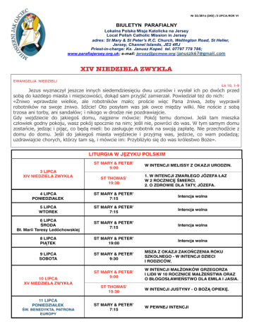 XIV NIEDZIELA ZWYKđA - lokalna polska misja katolicka na jersey