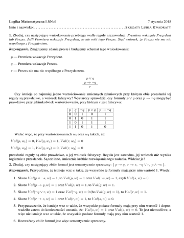 Logika Matematyczna I JiNoI 7 stycznia 2015 Imi˛e i nazwisko