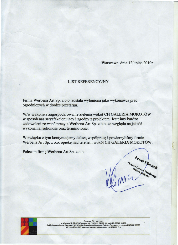 WerbenaArt Sp. z o.o.opiekęnad terenernwokółcH GALERIA MoKoTow.
