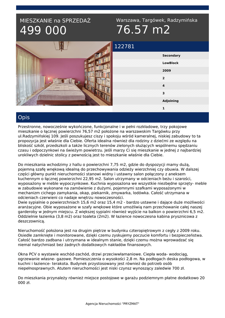 499 000 76.57 m2 - PRYZMAT nieruchomości