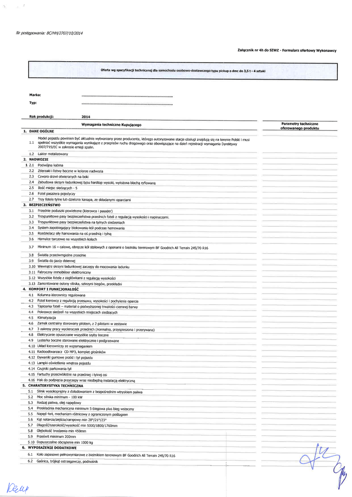 Załacznik nr 4h - Formularz ofertowy dla samochodu