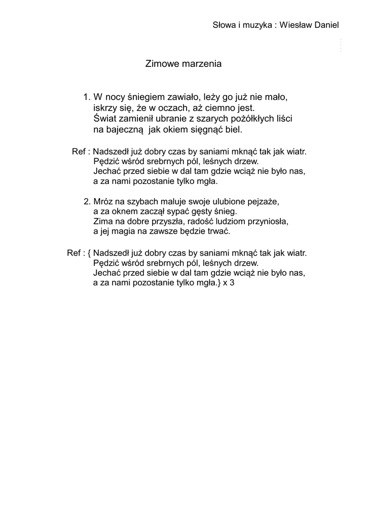 1. W nocy śniegiem zawiało, leży go już nie mało,